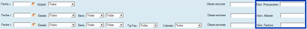 Se incluye en cada sección (Presupuestos, Albaranes, Facturas y OTs) un campo para poder filtrar / buscar por el número concreto de documento.